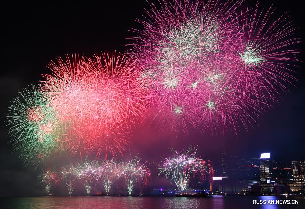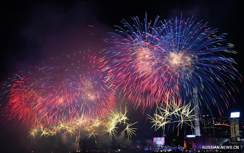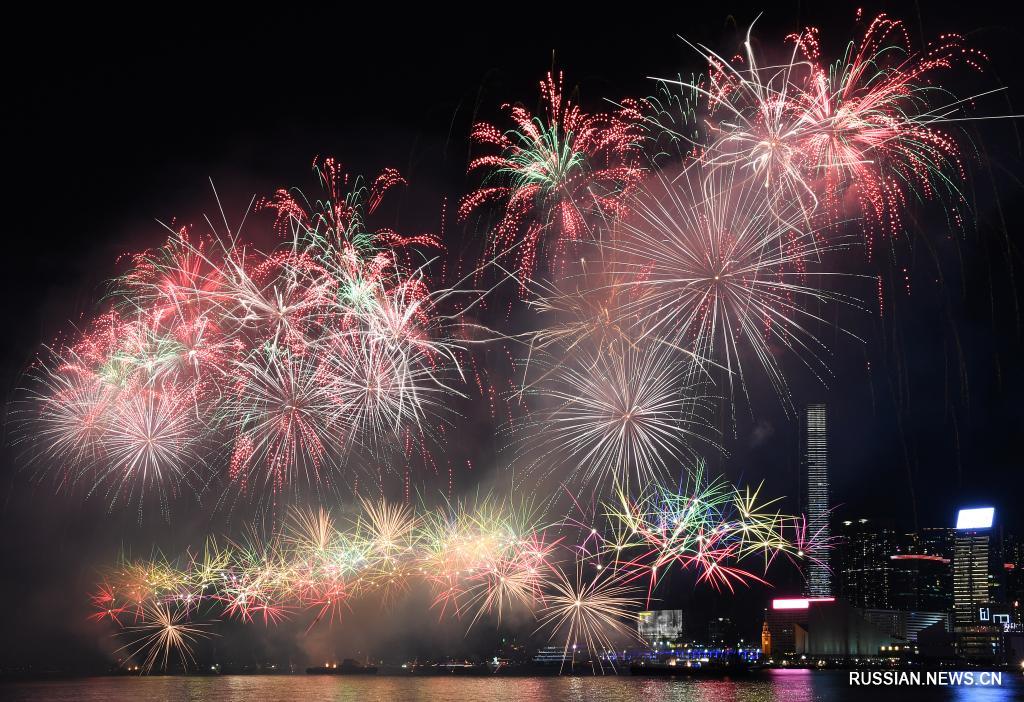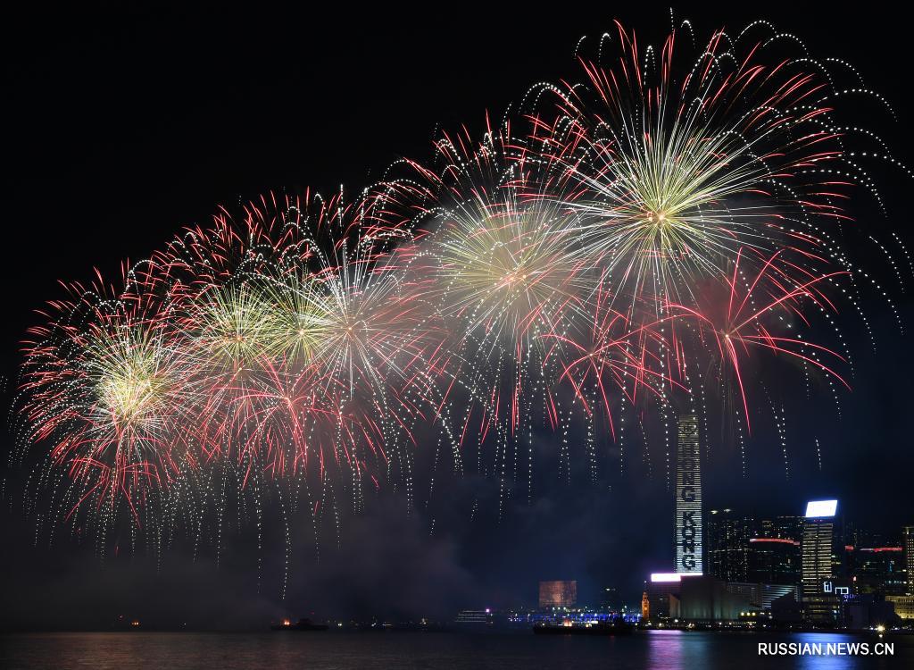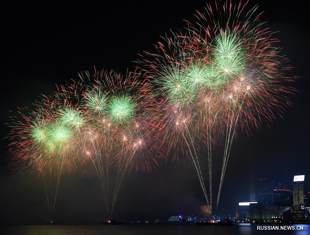Сянган, 2 октября /Синьхуа/ -- В среду над акваторией бухты Виктория Специального административного района Сянган состоялось фейерверк-шоу по случаю Национального праздника КНР.