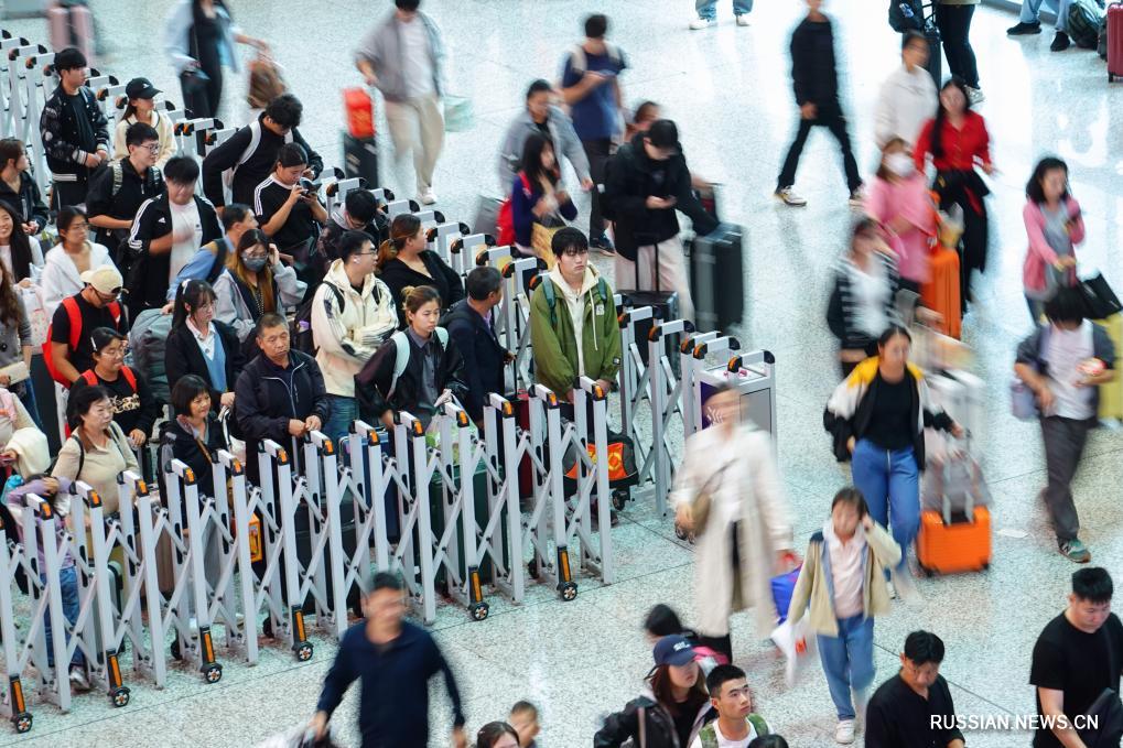 Пекин, 8 октября /Синьхуа/ -- В связи с завершением каникул по случаю Дня образования КНР /Национальный праздник КНР/ и праздника Середины осени /Чжунцюцзе или праздник Луны/, которые длились с 1 по 8 октября 2025 года, в Китае наблюдается пик обратного пассажиропотока.