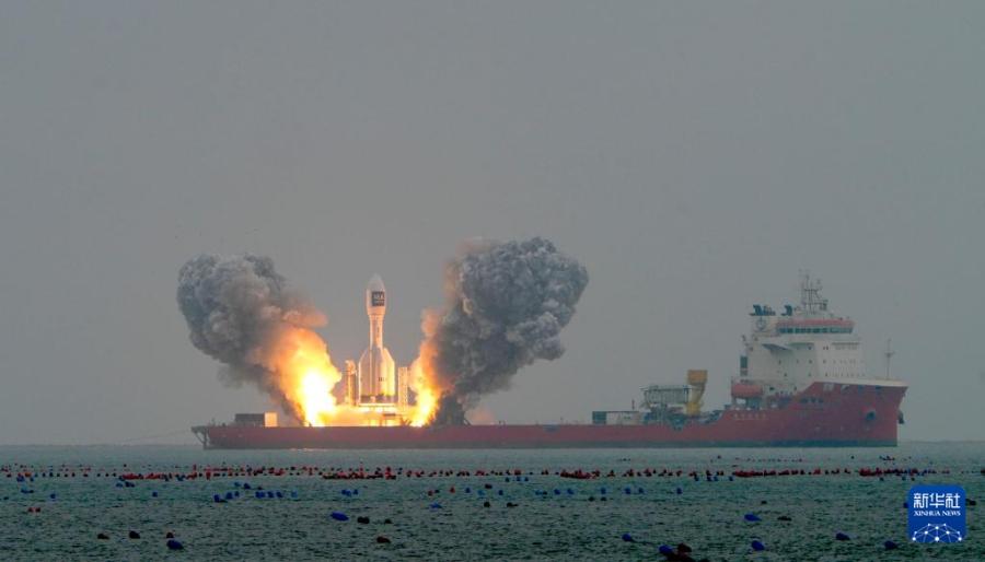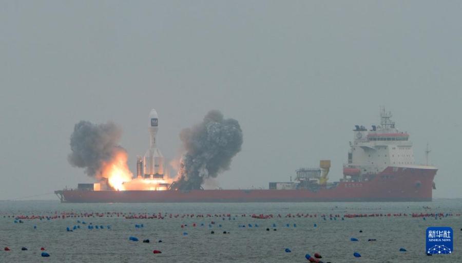 Хайян /пров. Шаньдун/, 11 октября /Синьхуа/ -- Китай в субботу запустил ракету-носитель Gravity-1 в космос из морской акватории у побережья города Хайян пров. Шаньдун /Восточный Китай/. Три спутника на борту были успешно выведены на запланированные орбиты.