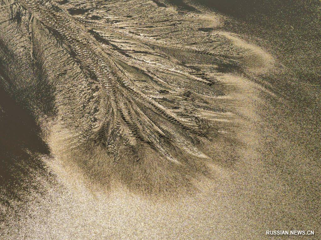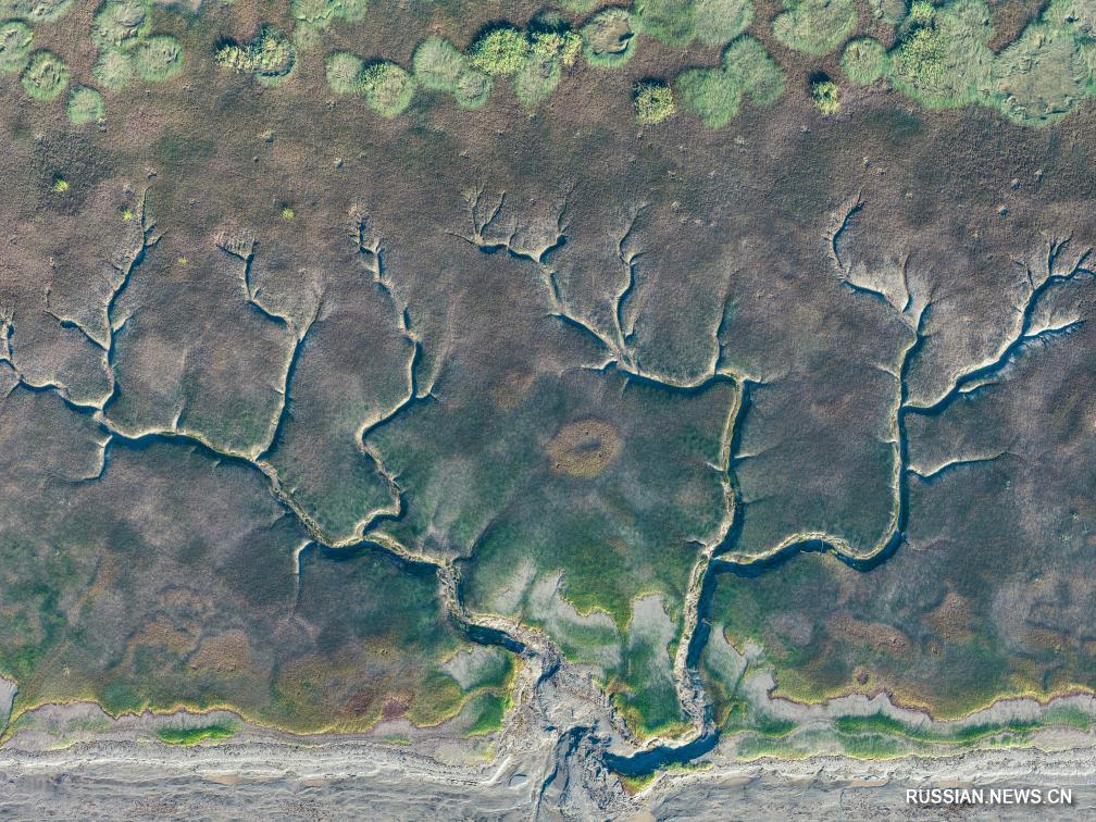 Цзясин /пров. Чжэцзян/, 14 октября /Синьхуа/ -- Во второй и третьей декадах восьмого месяца лунного календаря приливная волна на реке Цяньтан в пров. Чжэцзян /Восточный Китай/ представляет собой великолепное зрелище. После отступления приливной волны на отмелях образуются картины с уникальными "приливными деревьями" различных форм, что добавляет изюминку к наблюдениям для любующихся этим явлением.