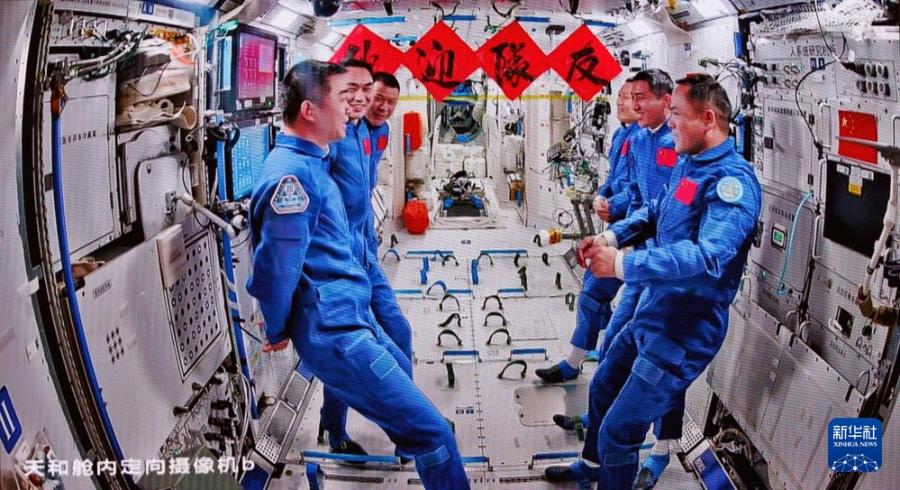 Экипаж "Шэньчжоу-20" открыл люк в 04:58 по пекинскому времени и поприветствовал прибытие новых коллег, согласно сообщению Управления программы пилотируемых космических полетов КНР /CMSA/.
