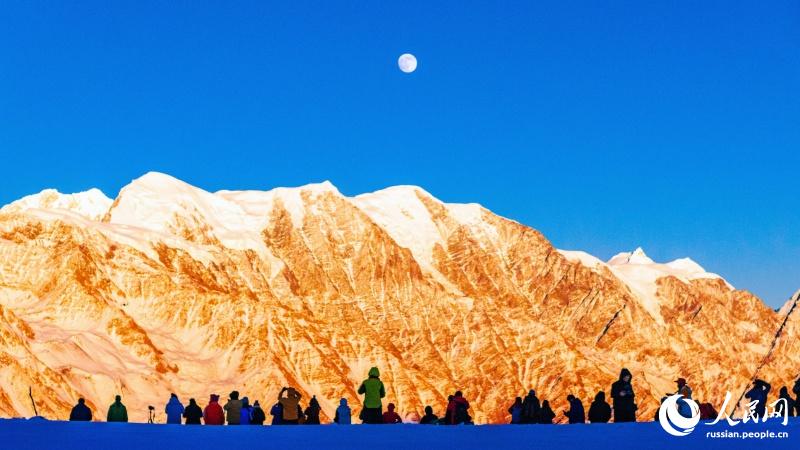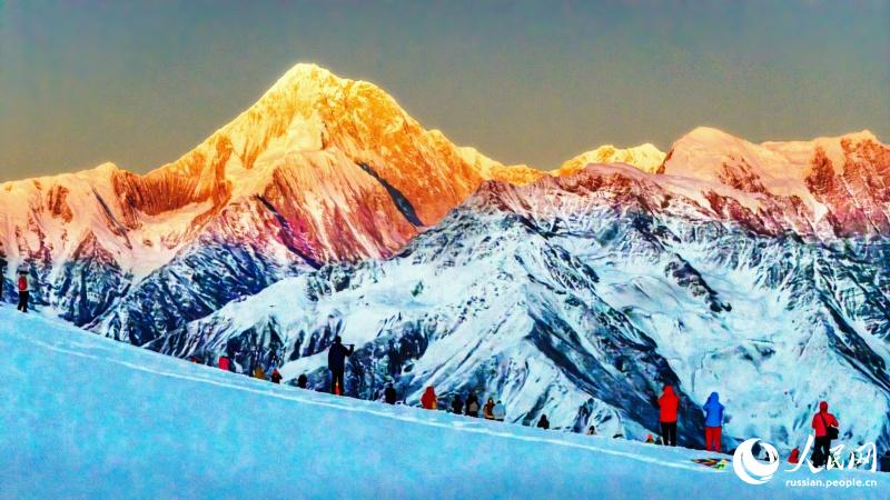 5 ноября, «Жэньминь жибао» онлайн -- 4 ноября в Кандине Ганьцзы-Тибетского автономного округа в провинции Сычуань туристы посетили живописные места в Национальном природном заповеднике горы Гунга. Им удалось полюбоваться захватывающим пейзажем «золотой горы в лучах солнца».