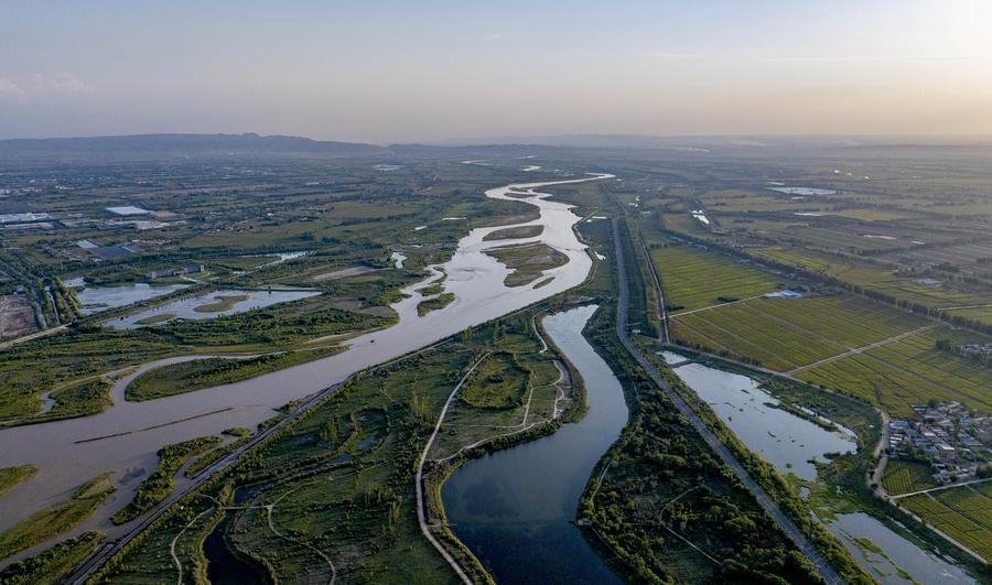 23 августа 2024 года, на аэрофотоснимке запечатлено побережье реки Хуанхэ в районе Литун города Учжун Нинся-Хуэйского автономного района /Северо-Западный Китай/. /Фото: Синьхуа/