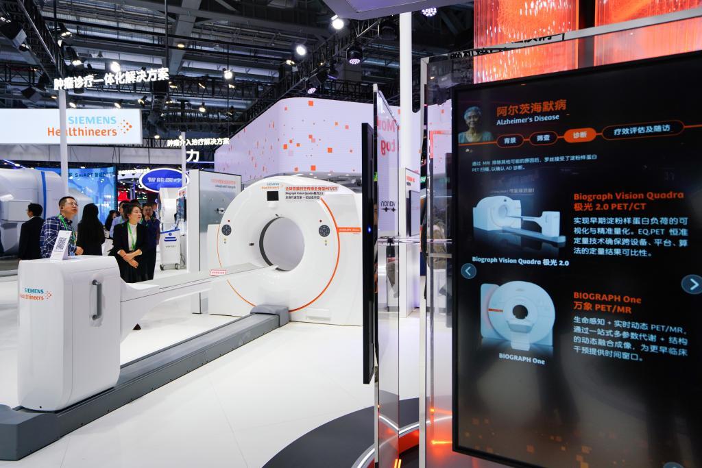 7 ноября 2025 года, на этой фотографии запечатлен стенд компании Siemens на выставке медицинского оборудования и товаров для здравоохранения во время 8-го Китайского международного импортного ЭКСПО /CIIE/ в восточно-китайском городе Шанхай. /Фото: Синьхуа/