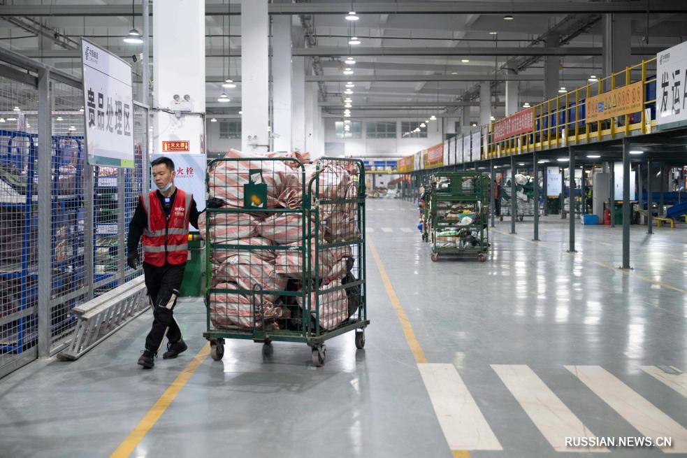 Харбин, 11 ноября /Синьхуа/ -- Накануне грандиозной онлайн-распродажи по случаю "Дня холостяка" /11 ноября/ сотрудники в распределительном центре курьерской корпорации "Почта Китая" в городе Харбин /пров. Хэйлунцзян, Северо-Восточный Китай/ круглосуточно работают над сортировкой, погрузкой и доставкой посылок ввиду пиковой логистической нагрузки.