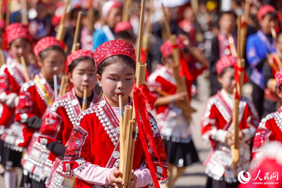 В этот день местные жители народности мяо предстали в расшитых серебром традиционных костюмах. Под звуки бамбуковых инструментов лушэн они исполнили древние напевы, подарив гостям возможность прикоснуться к великолепию национальных украшений и ощутить магию праздничных обрядов.