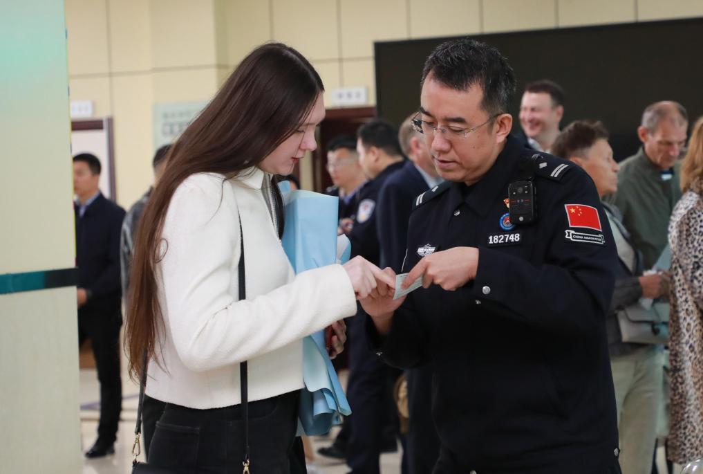 15 сентября 2025 года, на речном КПП Хэйхэ провинции Хэйлунцзян на северо-востоке Китая сотрудник отвечает на вопросы прибывшей по безвизу туристки из России о процедурах прохождения таможенно-паспортного контроля. /Фото: Синьхуа/