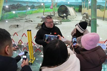 随后,记者团走进亚布力熊猫馆,与中国最北的熊猫“思嘉”和“佑佑”近距离互动。此时,两只熊猫正在馆内啃食竹子,看到来访的记者们,“思嘉”慢悠悠地挪了挪身子,黑亮的眼睛好奇地打量着来客。当一位媒体记者轻轻挥手时,“思嘉”竟抬起爪子作出回应,瞬间萌翻现场所有人。