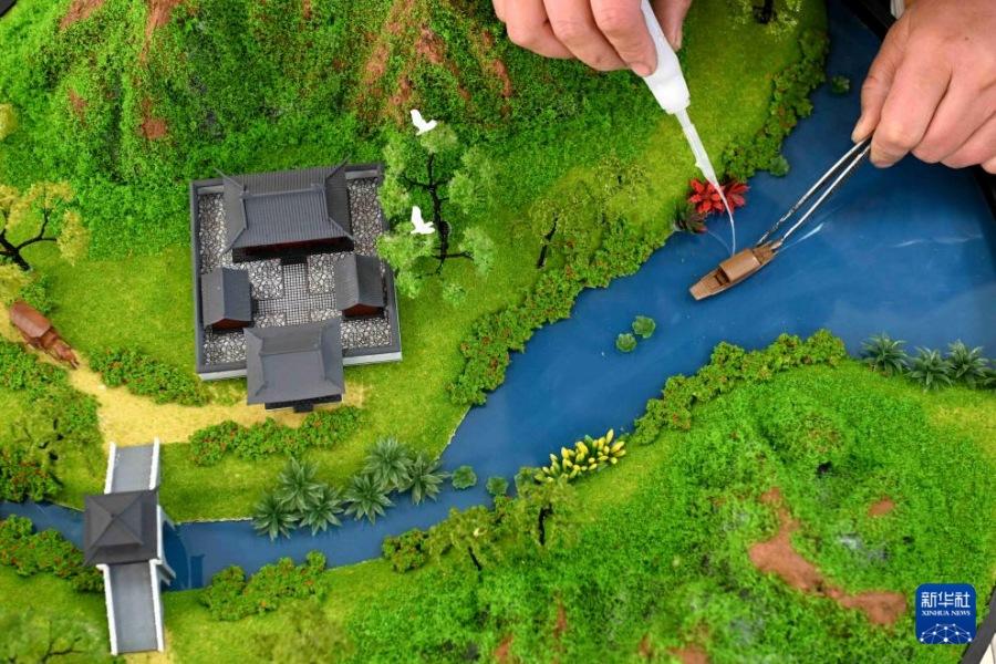 Опираясь на местные ресурсные преимущества, деревня Хэцюй применяет цифровые и интеллектуальные технологии для модернизации традиционной сферы. С использованием компьютерного проектирования, 3D-печати и ручной сборки здесь создаются разнообразные макеты городских, сельских, промышленных и других ландшафтов.