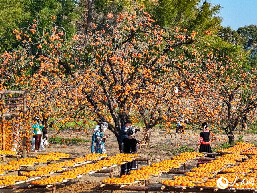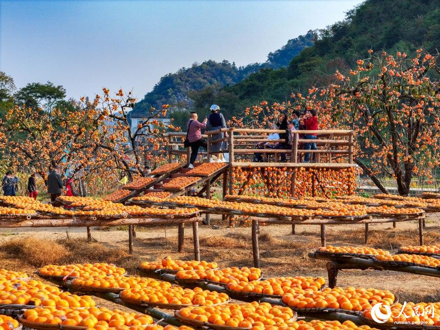11 декабря, «Жэньминь жибао» онлайн -- Зимние месяцы – золотая пора для посещения бескрайних плантаций хурмы в деревне Хунъянь Гунчэн-Яоского автономного уезда /Гуанси-Чжуанский автономный район, Юго-Западный Китай/. В последние годы уезд сделал сорт хурмы «юэши» своим символом, искусно соединив сельское хозяйство с туризмом. Эта стратегия не только повышает благосостояние местных жителей, но и служит мощным двигателем возрождения сельской местности.