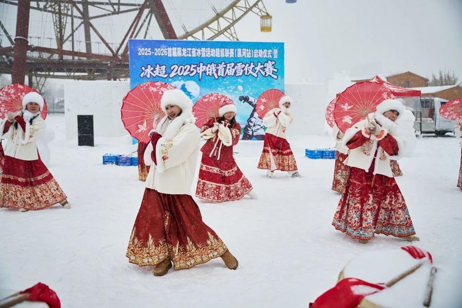 19 декабря 2025 года, церемония открытия 1-го Китайско-российского состязания по игре в снежки в городе Хэйхэ. /Фото предоставлено Управлением спорта провинции Хэйлунцзян/