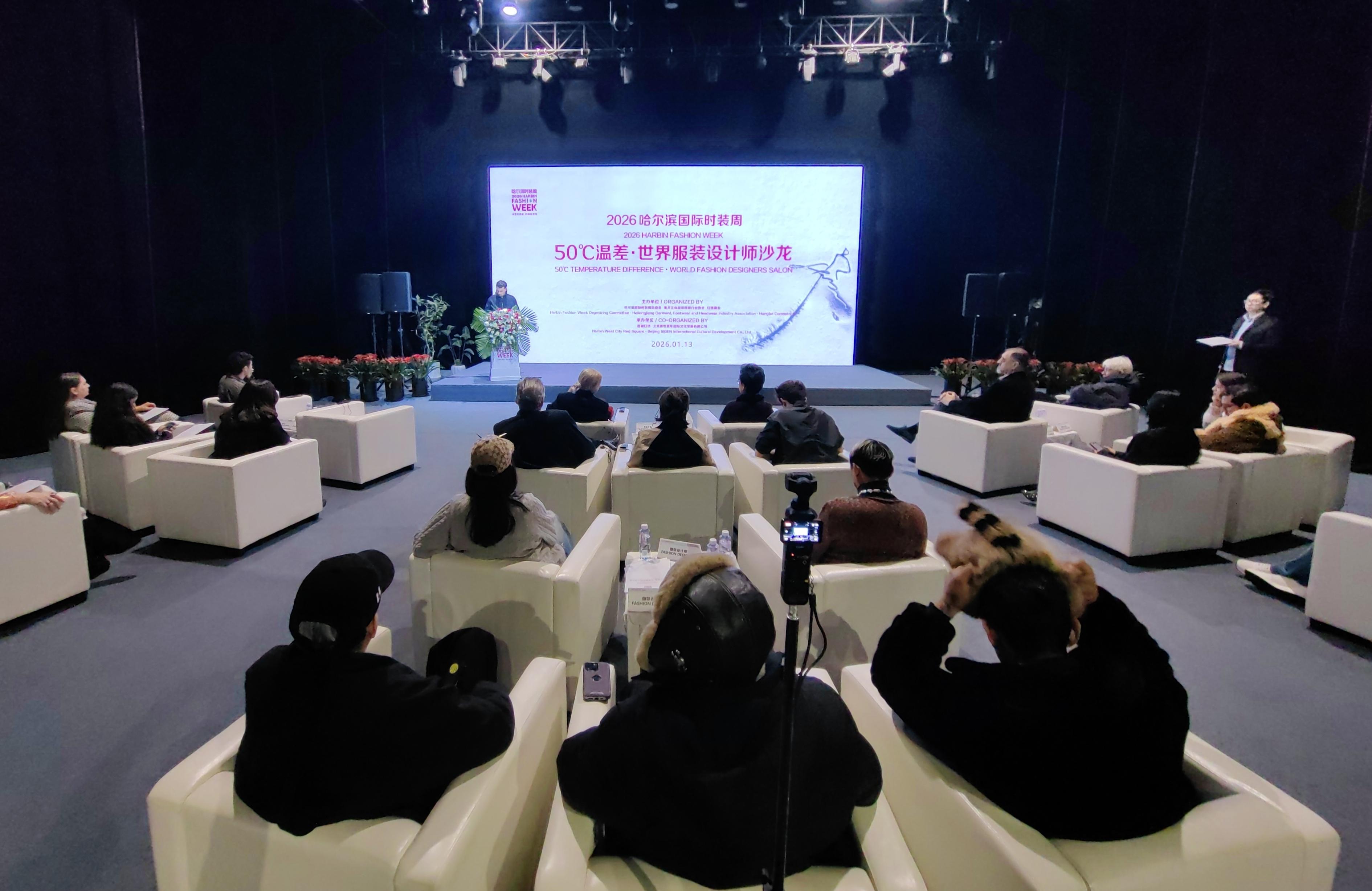 1月13日上午,2026第十二届哈尔滨国际时装周50℃温差·世界服装设计师沙龙举行。来自不同国家的时尚经纪人、音乐家、设计师次第登台,围绕时尚创意革新、AI科技与设计融合、国际设计趋势研判及地域文化赋能时尚等核心议题展开深度对话,为哈尔滨国际设计创意高地建设汇聚全球智慧。