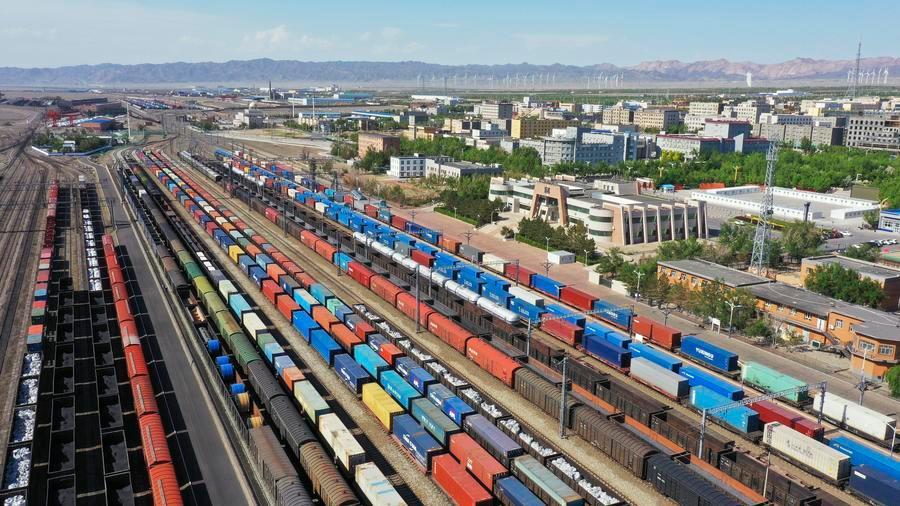 28 июня 2025 года, грузовые поезда Китай-Европа готовы к отправлению с КПП Алашанькоу Синьцзян-Уйгурского автономного района /Северо-Западный Китай/. /Фото: Синьхуа/