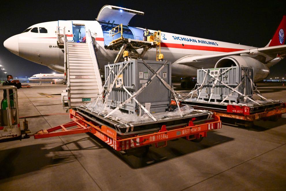 Около в 1:00 28 января по пекинскому времени большие панды Сяосяо и Лэйлэй прибыли в аэропорт города Чэнду провинции Сычуань /Юго-Западный Китай/, после чего их отправили на базу Яань Китайского центра по защите и исследованию больших панд, где они пройдут карантин.