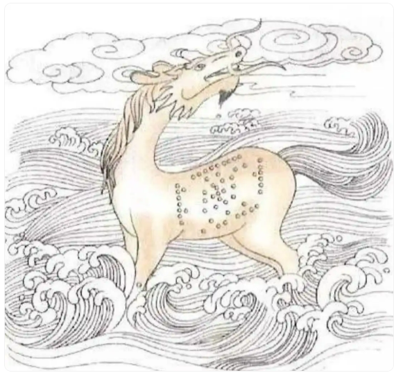 В китайской культуре энергичного человека с боевым духом часто называют «человеком с боевым задором» (лун ма цзиншэнь – дословно переводится как «дух дракона-коня»). Это выражение не только описывает духовное состояние, но и обладает более глубокими мифологическими корнями. Древние люди верили, что небесные кони или божественные кони называются «драконьими конями», считаются духовными существами неба и земли. В древней книге «Шаншу» («Чтимая книга», Книга истории) есть легенда, рассказывающая о божественном звере с головой дракона и телом коня, появившемся в реке Хуанхэ во времена легендарного предка китайской нации Фуси, он нес «хэту» (речную карту), положив начало китайской цивилизации.