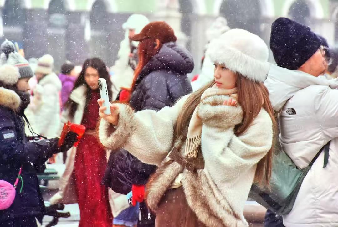 17, первый день Нового года. В Харбине начался снегопад. Снег падал на деревья, машины, здания и дороги, добавляя больше очарования ледяному городу во время фестиваля