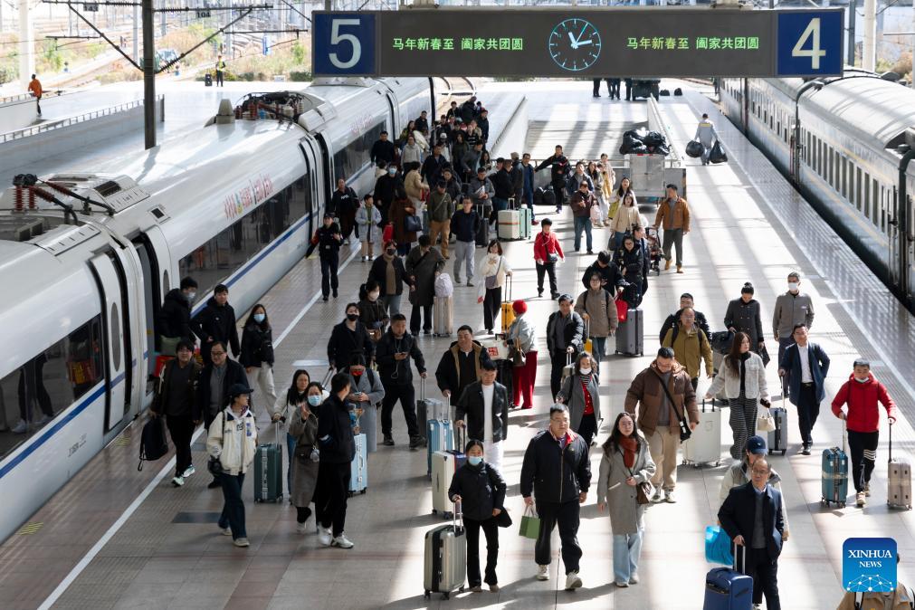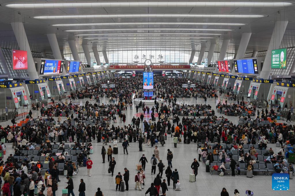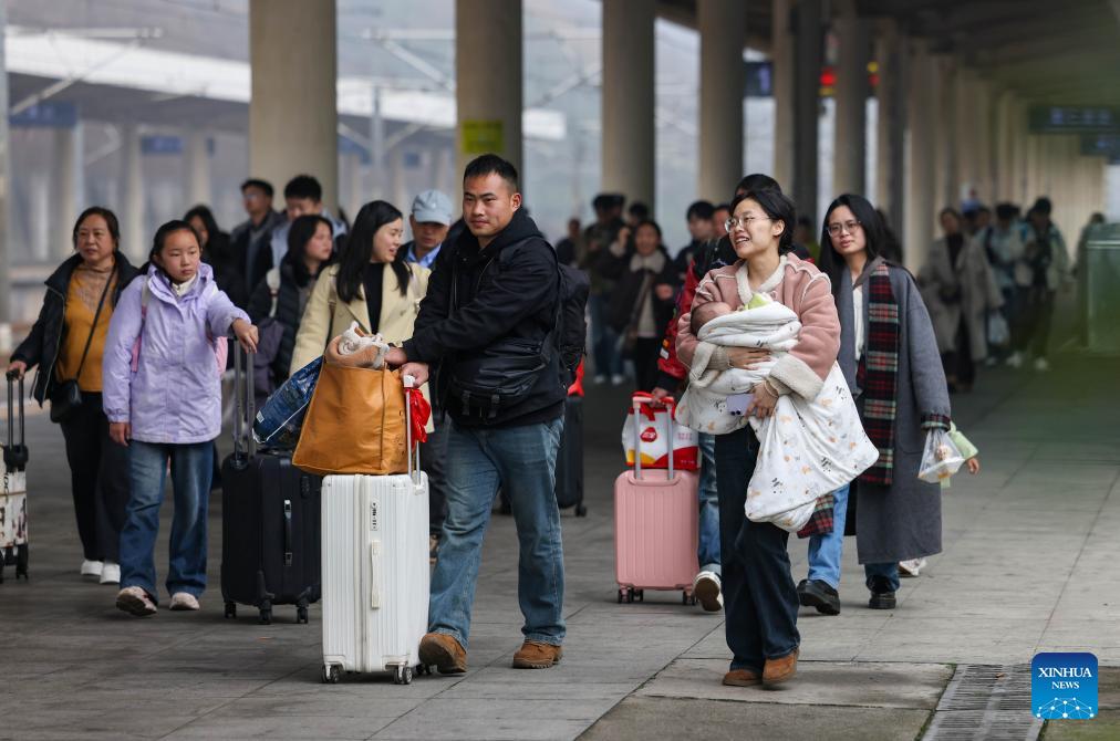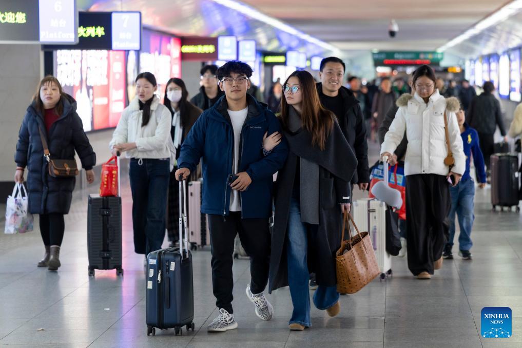 Пекин, 23 февраля /Синьхуа/ -- Корпорация "Китайские железные дороги" в понедельник заявила, что 23 февраля, в последний день 9-дневных каникул по случаю праздника Весны /Чуньцзе, традиционный китайский Новый год/, ожидается самый высокий уровень потока пассажиров, отправляющихся в обратный путь, прогнозируя, что за этот день на ж/д транспорте страны будет совершено до 18,5 млн поездок.