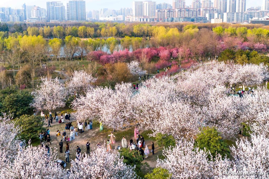 Сиань, 10 марта /Синьхуа/ -- По мере потепления, в национальном парке "Руины дворца Дамингун", расположенном в городе Сиань /пров. Шэньси, Северо-Западный Китай/, распускаются весенние цветы, привлекая многочисленных туристов.