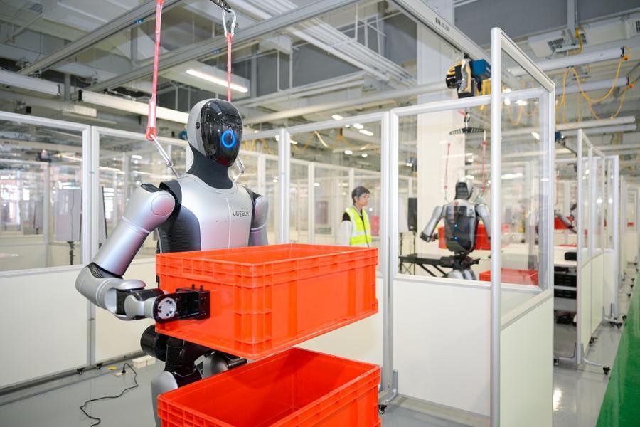 8 января 2026 года, робот-гуманоид обучается переносить предметы в центре сбора и тестирования мультимодальных данных для человекоподобных роботов в городе Цзыгун провинции Сычуань /Юго-Западный Китай/. /Фото: Синьхуа/