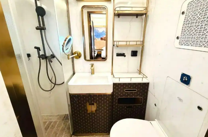 Каждый вагон оснащен раздельным санузлом. В состав поезда также входят многофункциональные вагон-ресторан и вагон-бар. Все это создает атмосферу «отеля на колесах» и позволяет удовлетворить индивидуальные потребности самых разных пассажиров.