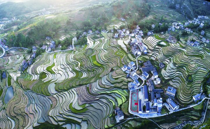 Эти террасные поля, расположенные у южного подножья горного хребта Циньлин, используют систему взаимосвязанных «полей, каналов, прудов и ручьев» для самотечного орошения, демонстрируя выдающуюся мудрость древних людей в водопользовании. В 2024 году они были внесены в список Всемирного наследия ирригационных сооружений.