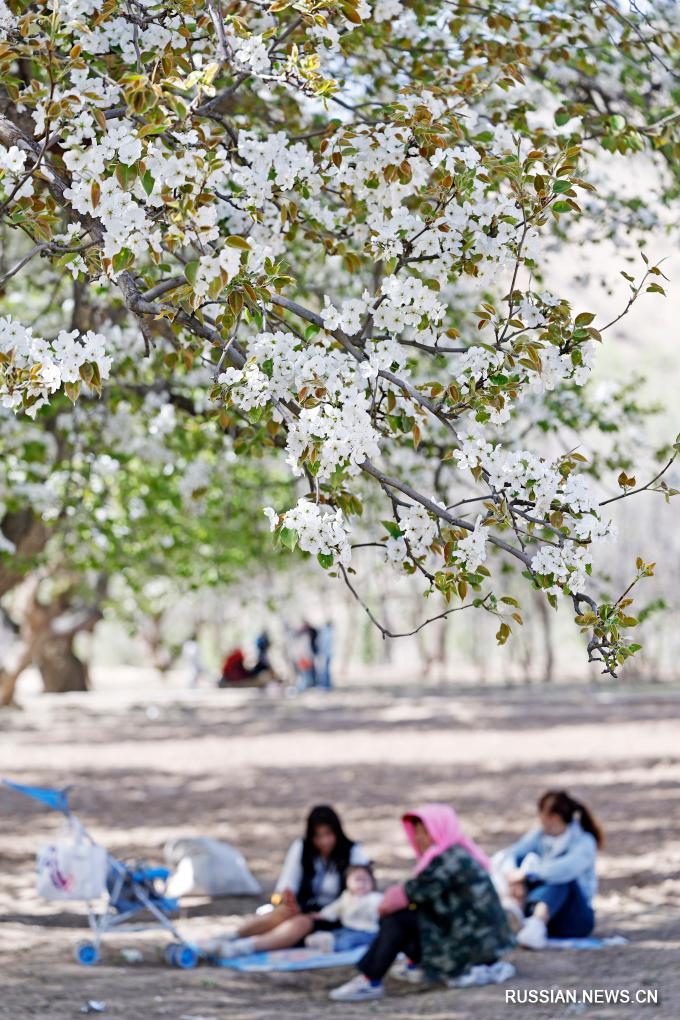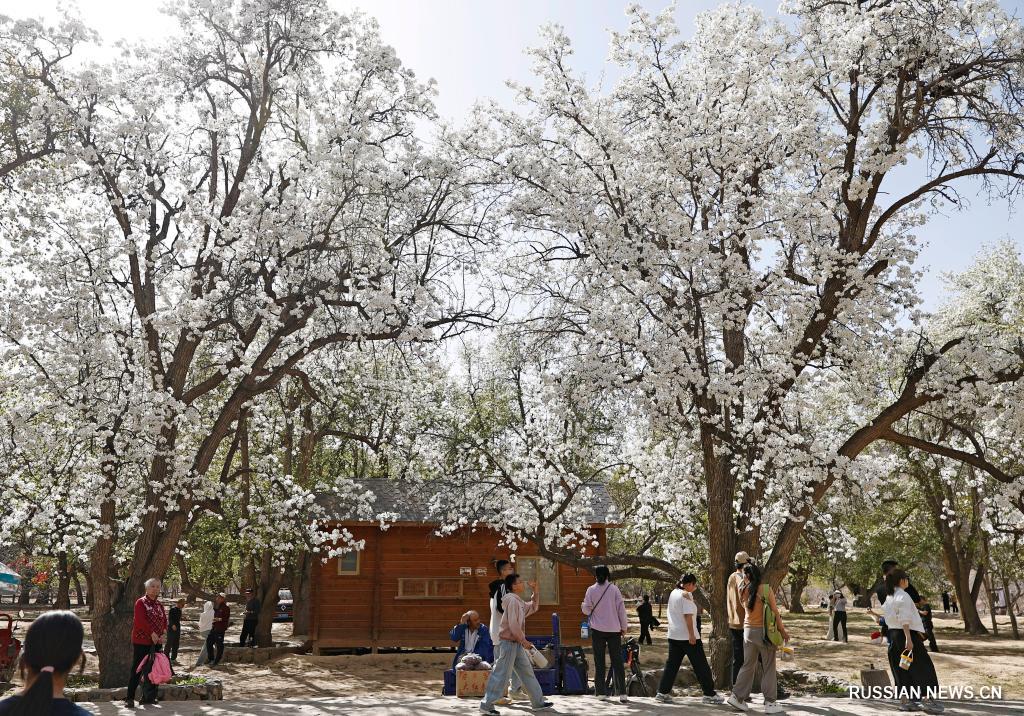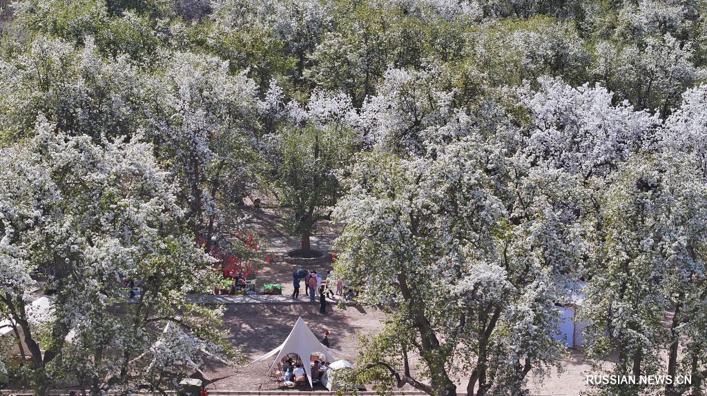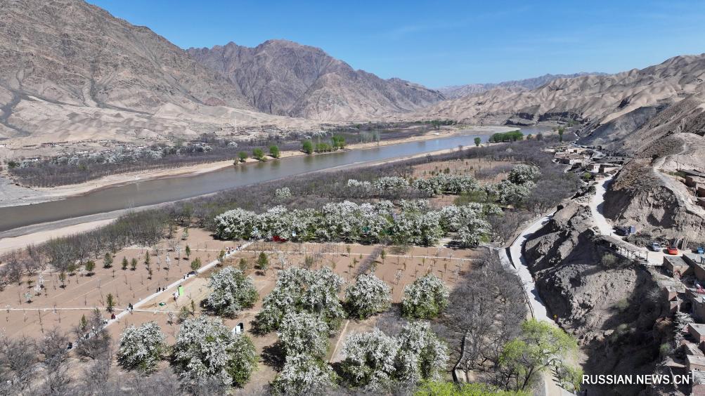Иньчуань, 8 апреля /Синьхуа/ -- В окрестностях города Чжунвэй в Нинся-Хуэйском автономном районе /Северо-Западный Китай/ сотни вековых грушевых деревьев, стоящих в полном цвету, стали прекрасным украшением берегов реки Хуанхэ в начале апреля и одним из факторов привлекательности этого места для туристов.