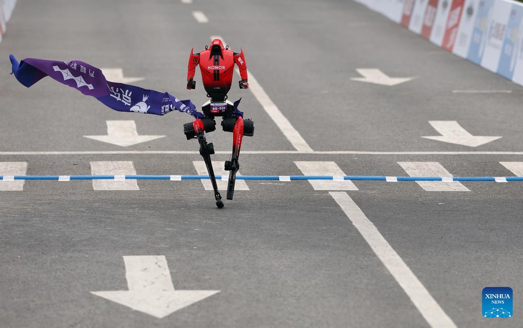 Пекин, 19 апреля /Синьхуа/ -- В китайской столице 19 апреля состоялся Пекинский полумарафон в районе Ичжуан 2026 года, совмещенный с полумарафоном для человекоподобных роботов. Робот-гуманоид "Молния", разработанный китайской компанией Shenzhen Honor Smart Technology Co., Ltd., одержал победу с чистым временем 50 минут 26 секунд, превзойдя мировой рекорд среди мужчин на полумарафонской дистанции -- 57 минут 20 секунд, установленный выдающимся угандийским бегуном Джейкобом Киплимо в марте этого года на Лиссабонском полумарафоне.