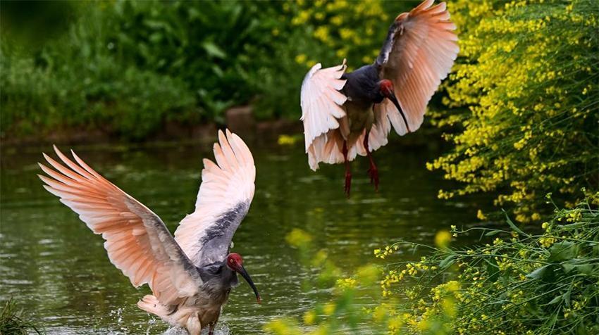 В уезде Янсянь провинции Шэньси начался сезон размножения хохлатых ибисов